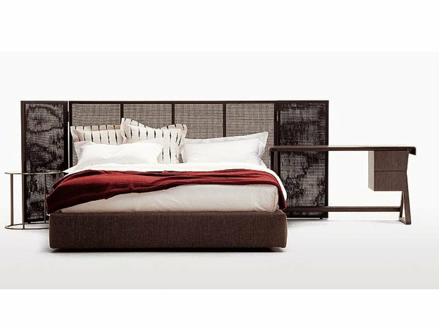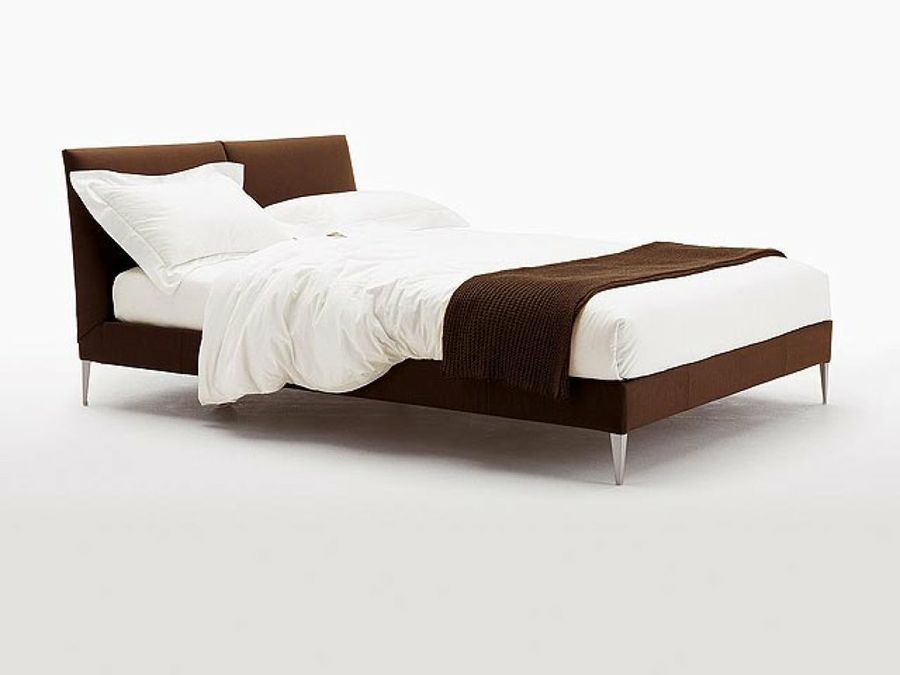 La misma marca nos propone la cama Charles, del mismo diseñador, que tiene las patas en forma de L y un cabecero a juego, accesorio que se convierte en la nota distintiva de la cama y que podemos encontrar en roble claro o grafito cepillado, en roble gris o marrón, y en pintado satinado. Incluye un mueble auxiliar en cristal bronceado reflectante.