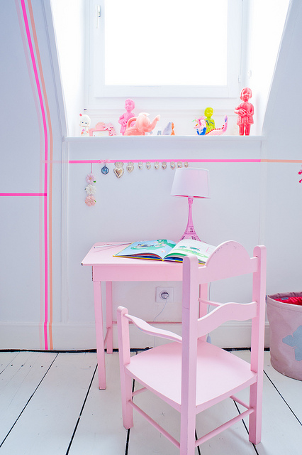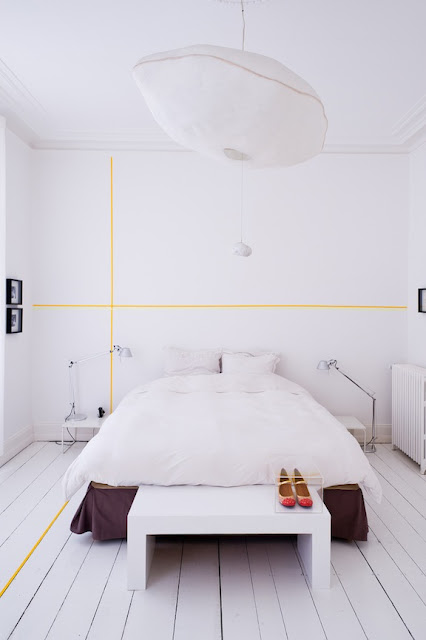 Por eso, hoy les muestro algunos ejemplos de como puedes utilizar el estilo washi-tape. Sin duda puedes cambiar el aspecto de cualquier habitación en un pis pas, luego si te cansas la quitas y ya está.