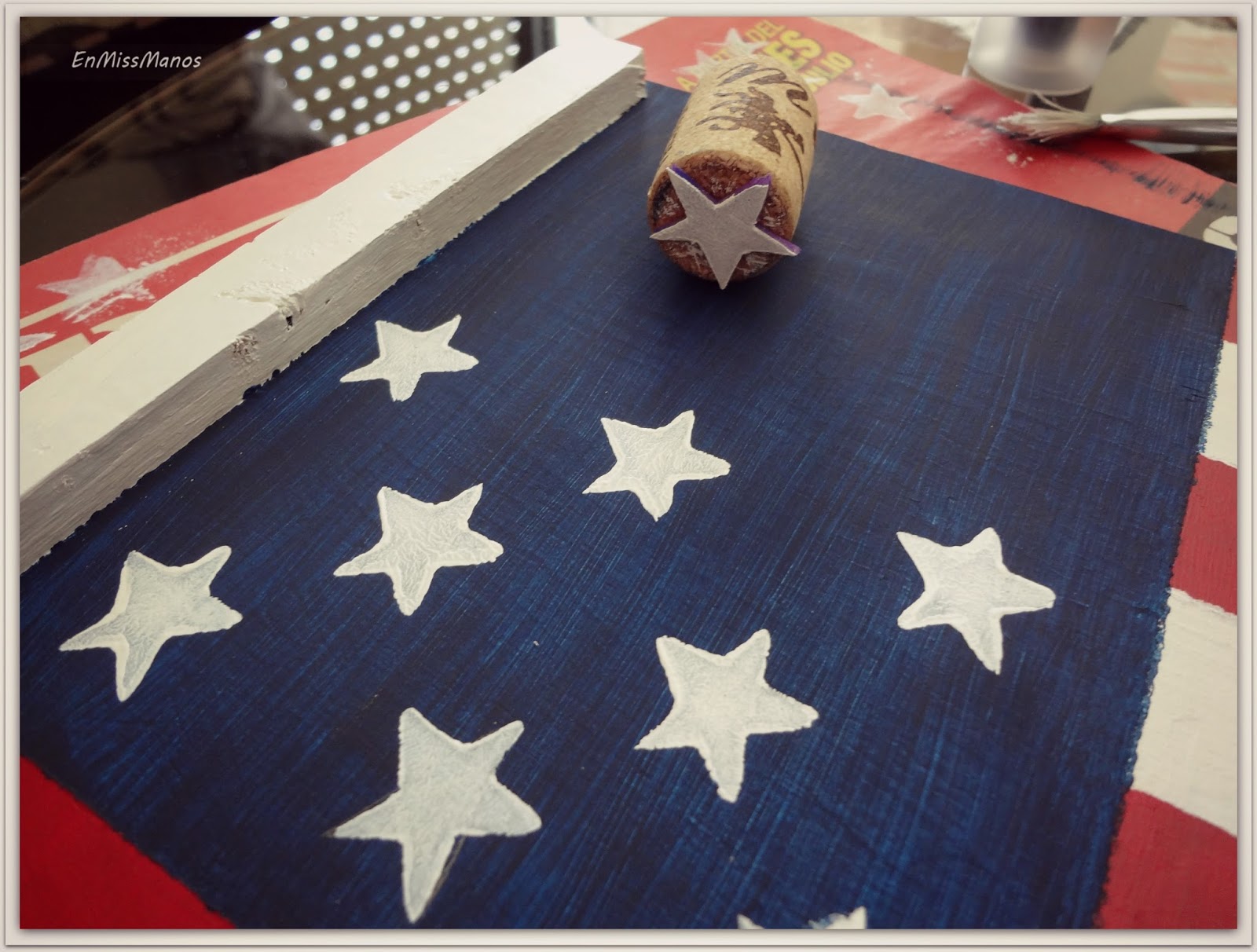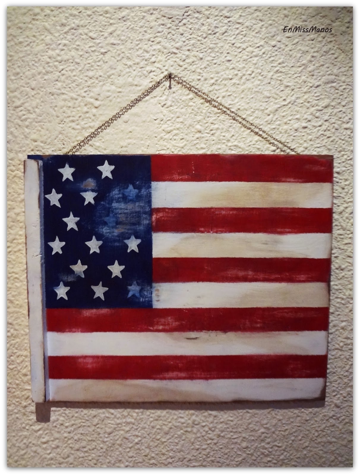 Hoy os quiero enseñar un cartel que hice con la tapa de una caja de vino al que le pinté la bandera de Estados Unidos. Al principio quería hacer toda la caja a juego pero comencé con la tapa y me gustó la idea de dejarla como cartel. Aquí la tenéis!