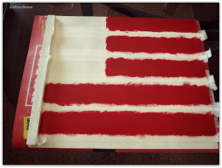 Con cinta de pintor voy haciendo las líneas de la bandera. Para esto utilicé pintura a base de látex.