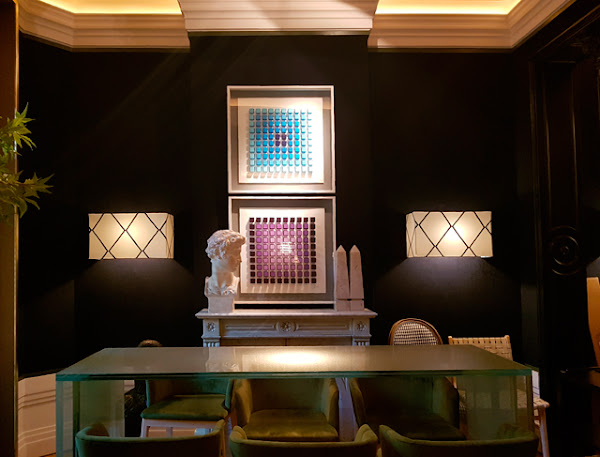 Ha recreado un saloncito privado, excesivo, poético, lujoso. Y esa lámpara de plumas, ohh!! esa lámpara, ¿me la llevaría a casa?, pues no, porque no tengo dónde ponerla. Como dijo mi compañera Belén, - yo lo que quiero es una casa en la que "pegue" esa lámpara, y no puedo estar más de acuerdo.