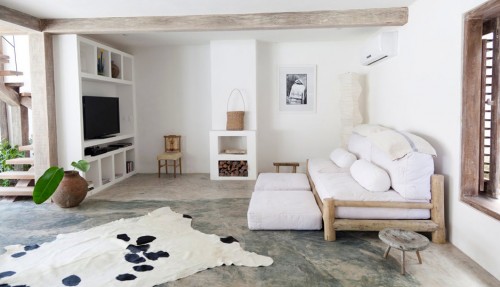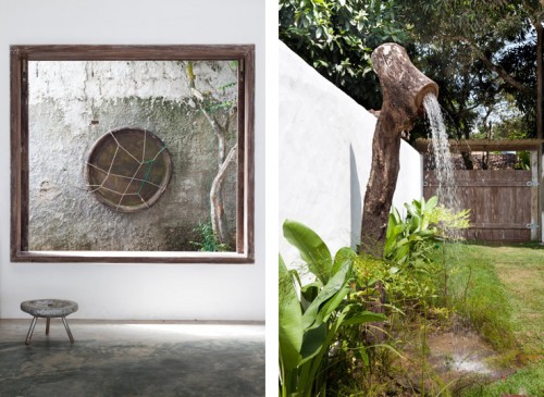 Con las ganas que tengo de ir a Brasil y va y me encuentro con esta casa que se puede alquilar para pasar unos días en ella, me parece estupenda, abierta totalmente al exterior con una decoracion sencilla, suelos de cemento y vigas, puertas, ventanas y muchos muebles creados con madera de la zona.