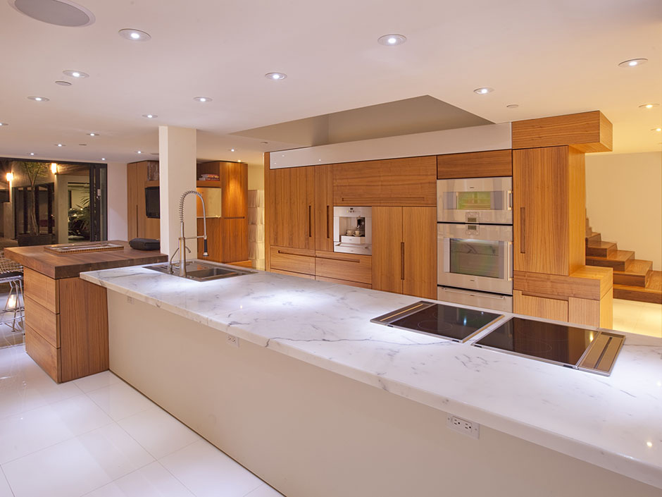 En el diseño de este loft , vemos un ejemplo de como integrar la cocina en el espacio y que esta forme parte de laarquitectura. La combinación madera, blanco y acero se repite en toda la casa creando una sensación de unidad, donde la cocina es un elemento del salón y el salón de la cocina.