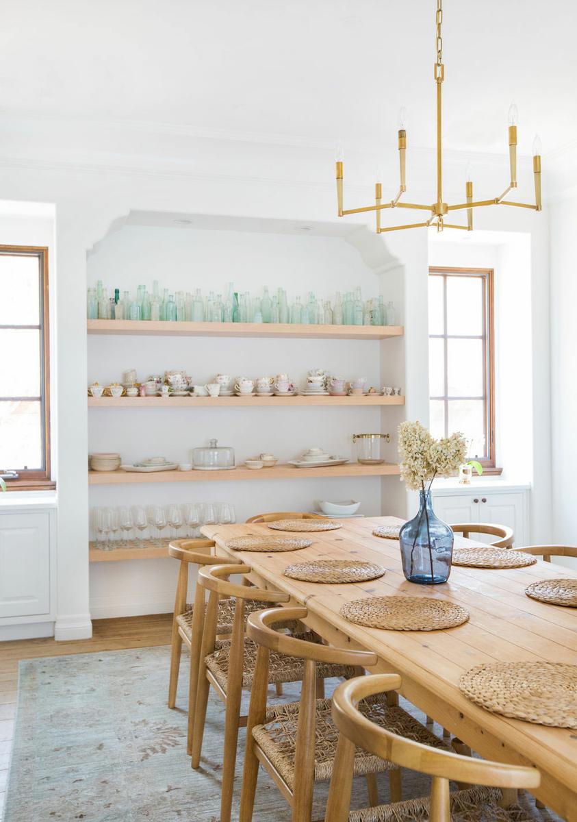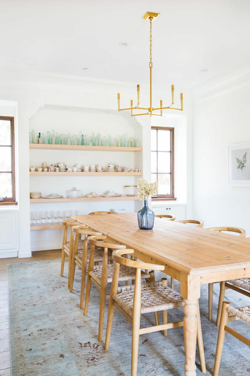 Para una persona que está constantemente cocinando, resulta cómodo tener todo a mano y a la vista, de ahí que Conrad decidiera quitar los antiguos armarios y reemplazarlos por estanterías de madera natural. Pero su amor por las estanterías abiertas va más allá y las llevó hasta el comedor, donde muchas de las piezas ya no son sólo puramente funcionales sino decorativas. Allí expone su colección de botellas de vendimia así como antiguas tazas de té. Aviso, esta manera de almacenar es bonita pero sólo apta para los muy ordenados, si eres un poco caótico opta mejor por armarios cerrados.