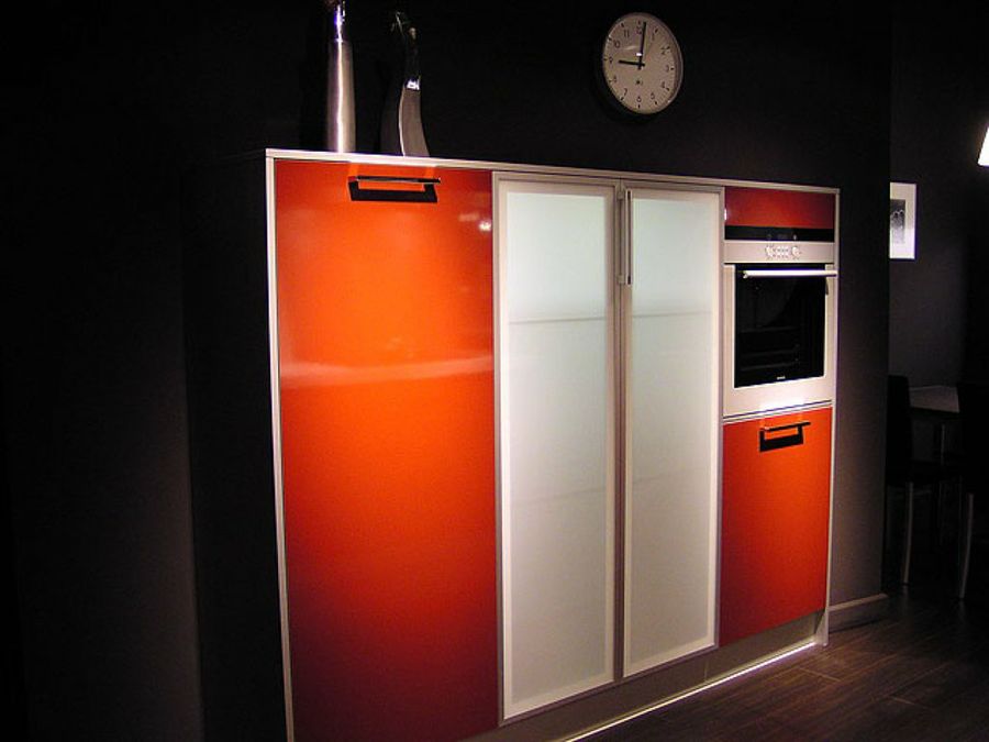 Los armarios acristalados presentan un contraste sin tapujos frente al tono del mueble con el que lo combinamos. Este tipo de oposiciones son innovadoras y provocan un impacto visual llamativo.