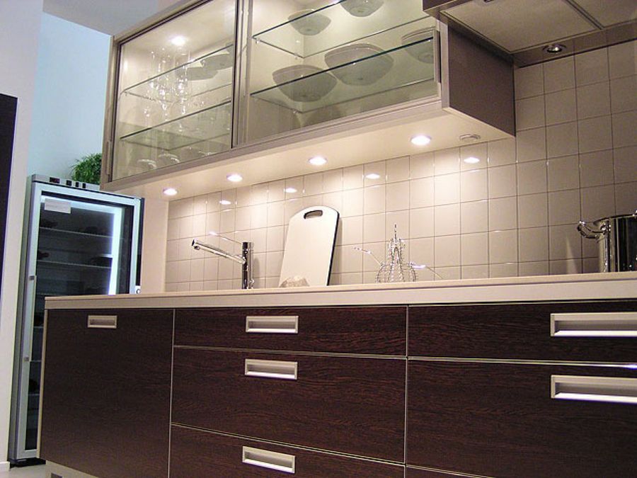 En ocasiones, el cristal es el complemento ideal. Las luces empotradas en las vitrinas iluminan por completo los muebles de la cocina. Con las vajillas en el interior, dan el contrapunto a los muebles cerrados.