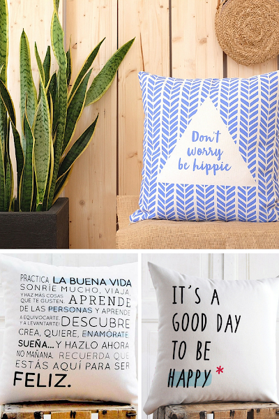 Dándole una vuelta a la decoración de casa para esta primavera y verano y pensando en renovar algunos complementos de salón, se me ha ocurrido poner algo más desenfadado para los meses de calor en los que parece que apetece algo más informal y se me ha ocurrido sustituir los cojines con flores y mariposas con mucho color que utilizo durante ambas estaciones, por otros con mensaje, que están tan de moda.