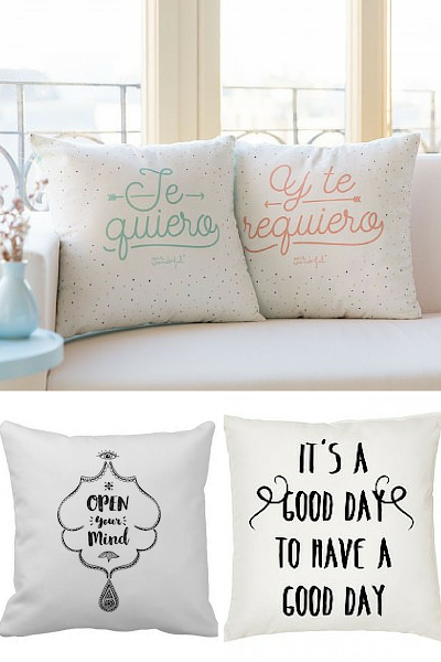 Así que me he puesto manos a la obra a ver que encuentro en mis tiendas online de referencia y en otras que he encontrado nuevas y he hecho una lista enorme de cojines con mensaje que me gustan y que, obviamente, tendré que depurar porque tanto cojín no tiene cabida en mis dos sofás.