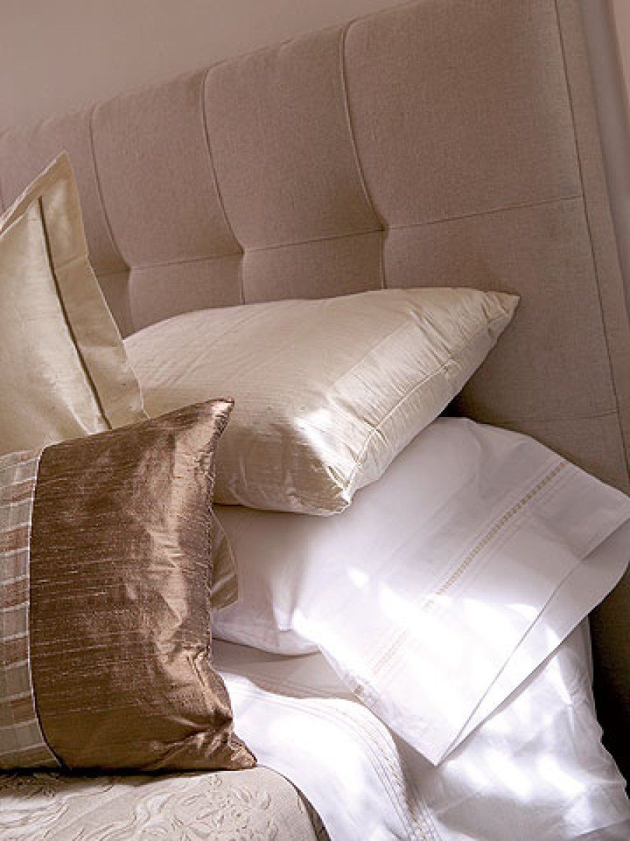 Te invitamos a colocar también estos atractivos cojines en tu dormitorio. Inspirándose en el beige y el marrón y con un juego de cama en tonos claros otorgarán un aire sofisticado al lugar más preciado para el descanso. La fotografía muestra varios modelos de Lienzo de los Gazules.
