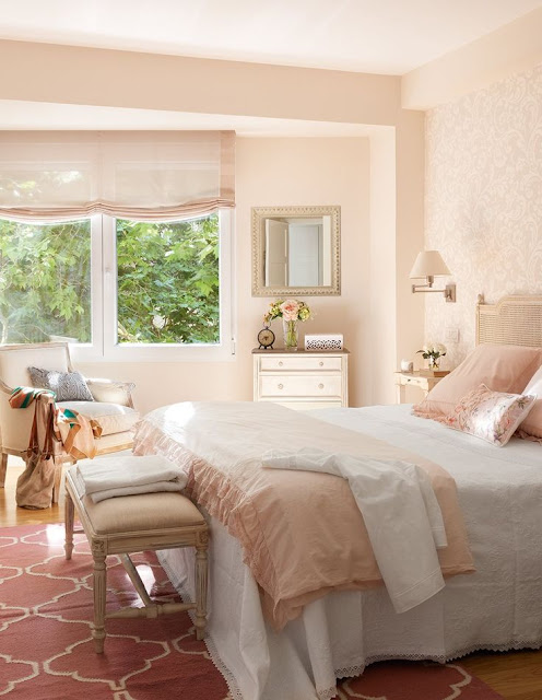 Cuando combinamos el color beige con el rosa como en la siguiente imagen, le estas dando a ese espacio un toque muy femenino y una sensación de frescura y acogedora.