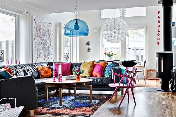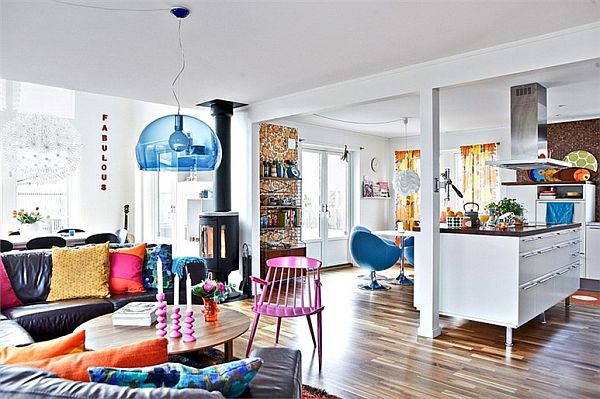 La casa que os traigo hoy tiene un amplísimo salon-comedor de espacio abierto y lleno de color por todos los lados.