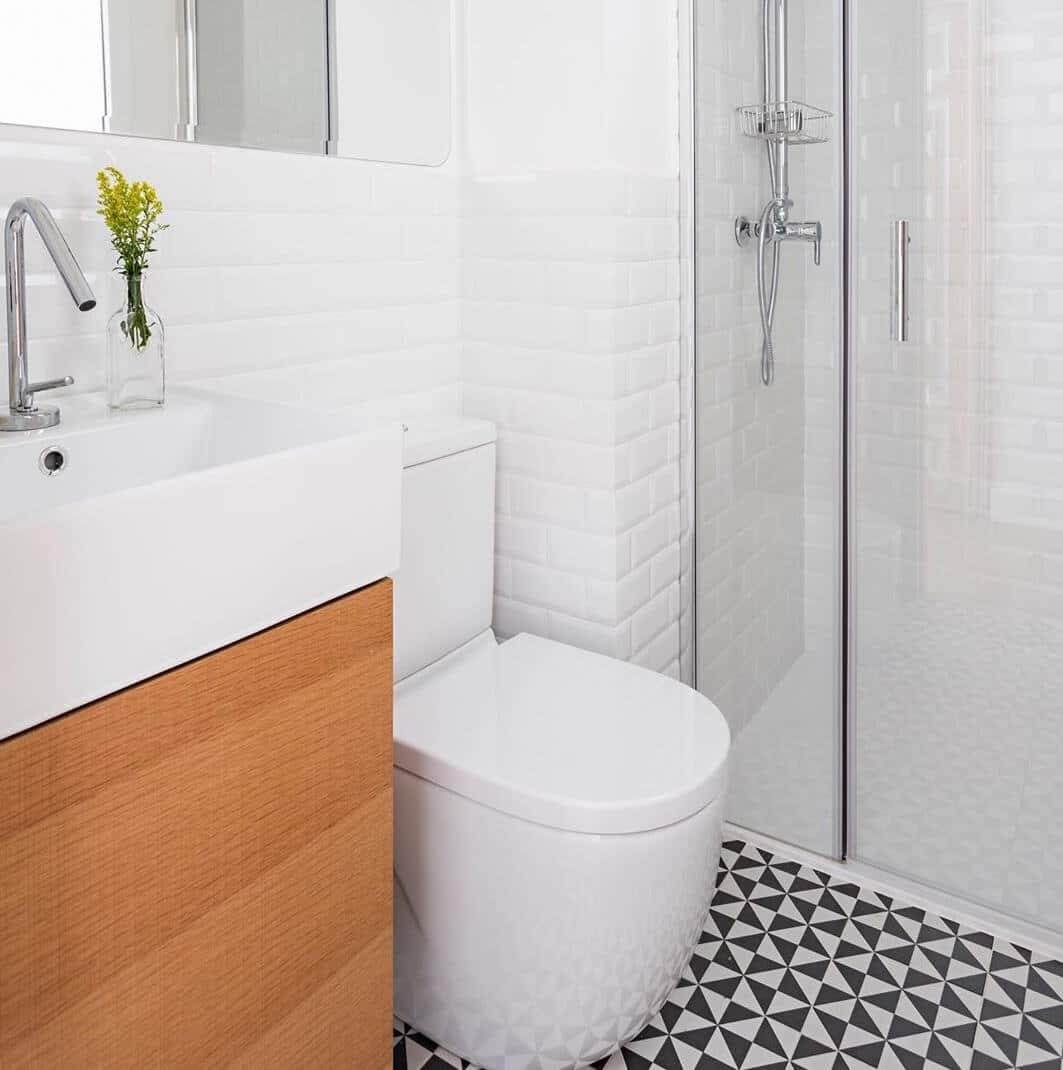 Los mejores, para no restar espacio, son los sanitarios suspendidos en el aire. Ya que aportarán esa sensación de ligereza visual, que tanto hace falta, en estos espacios pequeños.