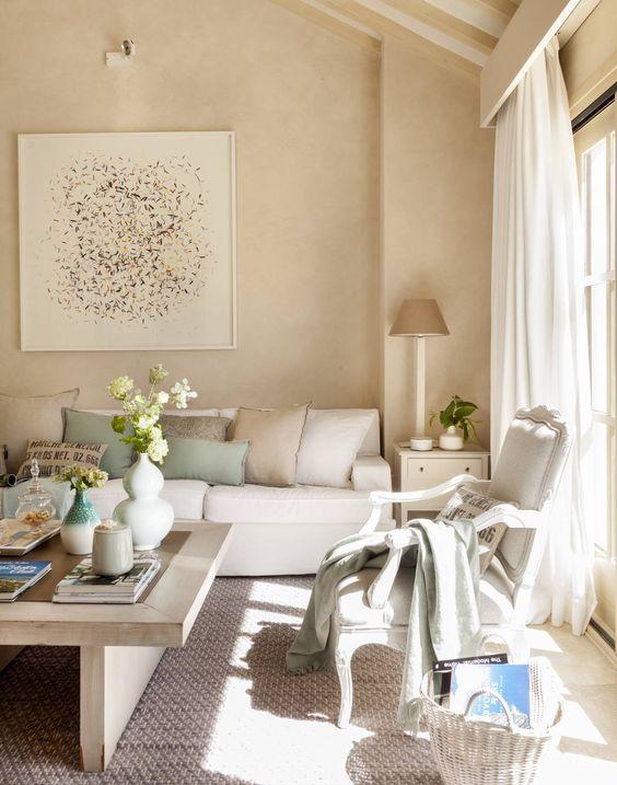 Tanto en paredes, como en cortinas, sofás y el resto del mobiliario de casa, es imprescindible, rodearse de colores neutros y claros. Justamente para dar esa luminosidad, que tanto nos gusta y buscamos en una casa.