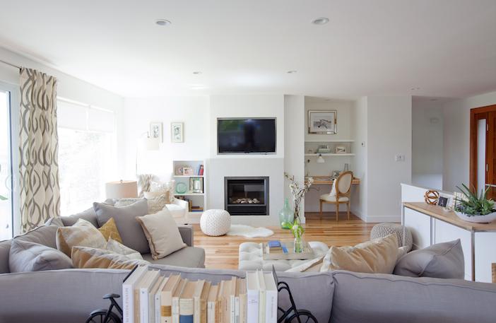 Estaría de lujo tener una habitación extra, pero de momento me voy apañando. Al igual que en esta casa donde se ha adaptado un espacio al lado de la chimenea en el salón.