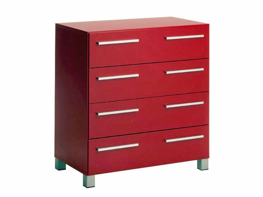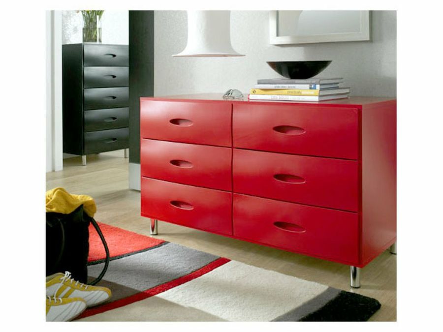 Rivia es otro ejemplo de la colección de Home Ideas. Una pieza lacada en rojo que se caracteriza por sus líneas rectas y sencillas. Posee cuatro amplios cajones en los que organizaremos, por ejemplo, la ropa de cama. Destacan los tiradores de metal a juego con las patas. Un mueble minimalista que combinará sin problemas con cualquier dormitorio.