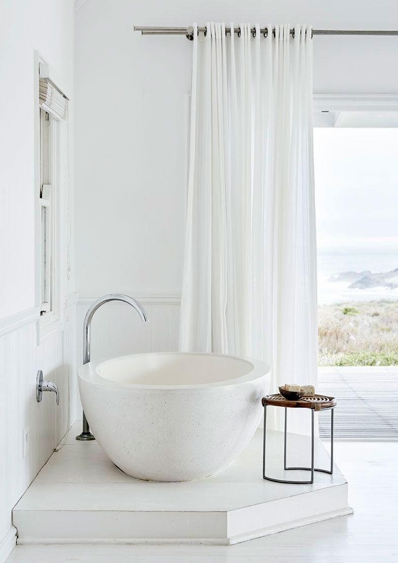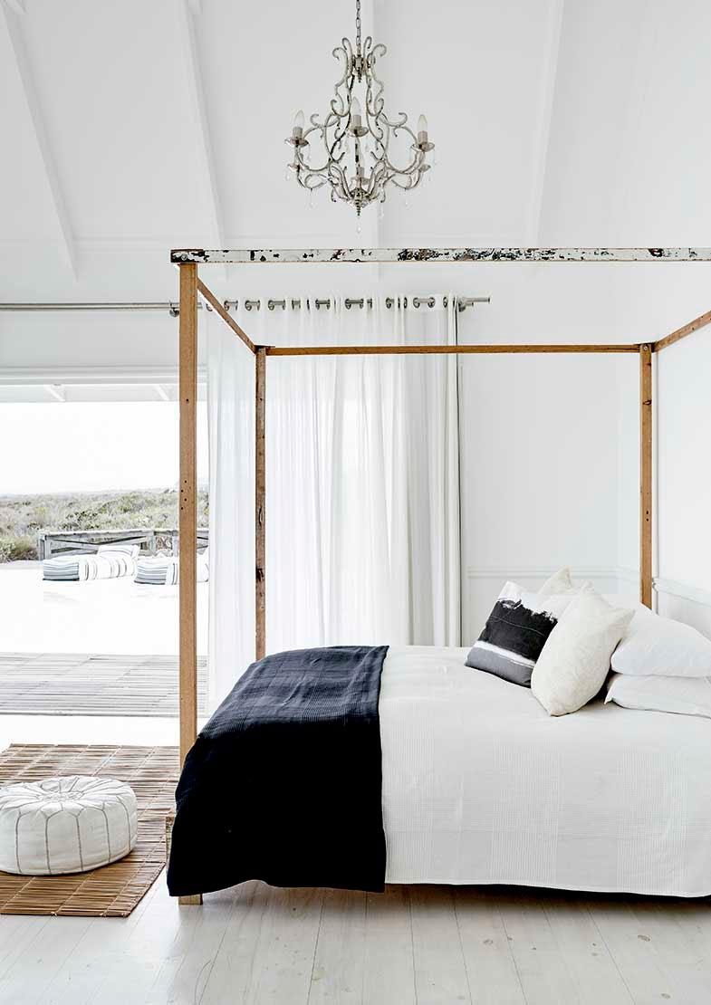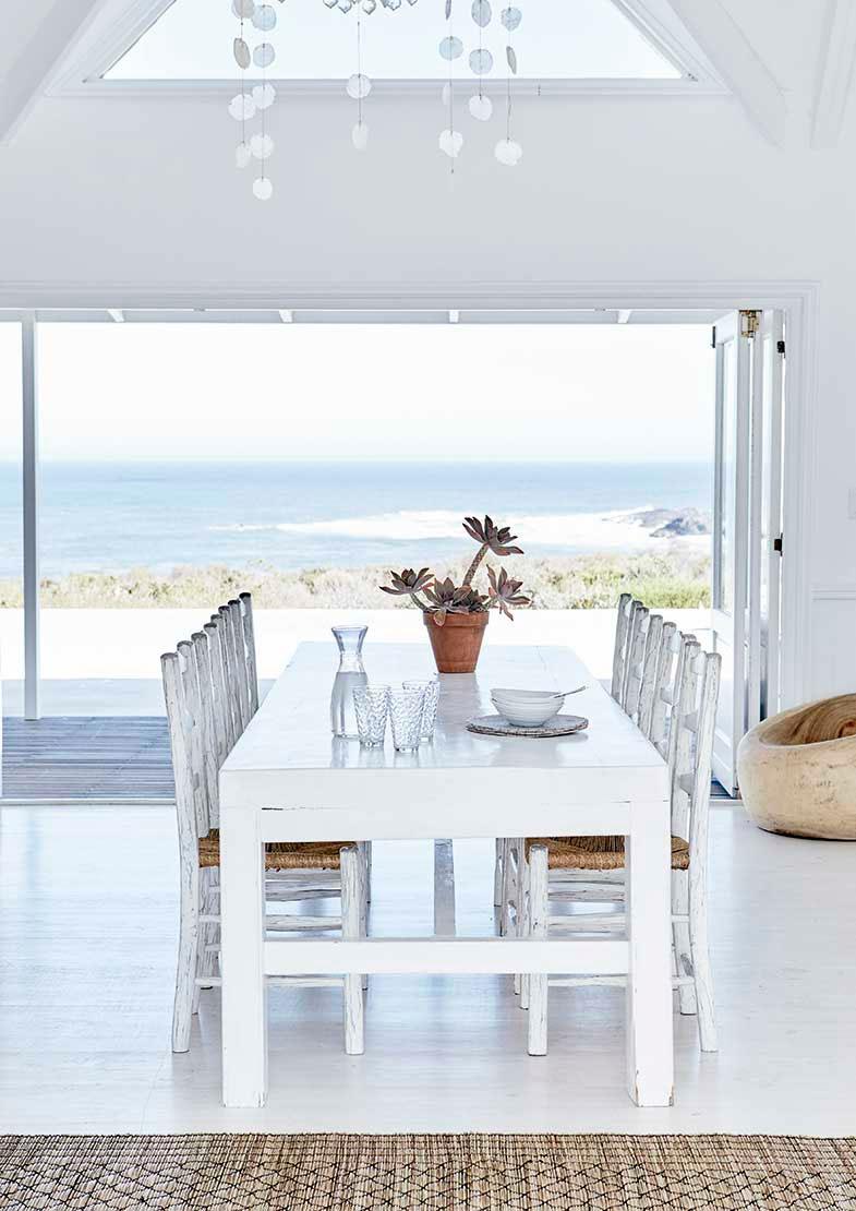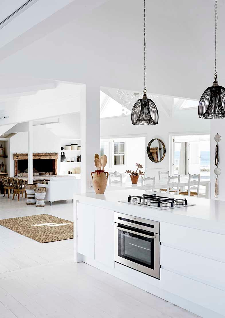 La casa en cuestión se encuentra en Sudáfrica y pertenece a dos prestigiosos fotógrafos que la construyeron como segunda residencia para poder despejarse de sus exigencias laborales. Además tanto ellos como sus hijos son amantes del surf y la zona era muy adecuada para la práctica de este deporte. En la parte inferior de la casa, se encuentran las zonas comunes con altos techos que crean sensación de amplitud y ventanales que se abren por completo al exterior, donde el final de la piscina se confunde con el comienzo de las vistas del mar. Arriba se encuentran las zonas privadas, dormitorios y baños bajo techos abuhardillados, aquí la sensación de recogimiento es mayor. Todo ello se ha unificado gracias al color, un manto blanco cubre toda la casa a la que se le ha aportado calidez gracias a las maderas, a las fibras naturales y toques sofisticados con pinceladas de negro.