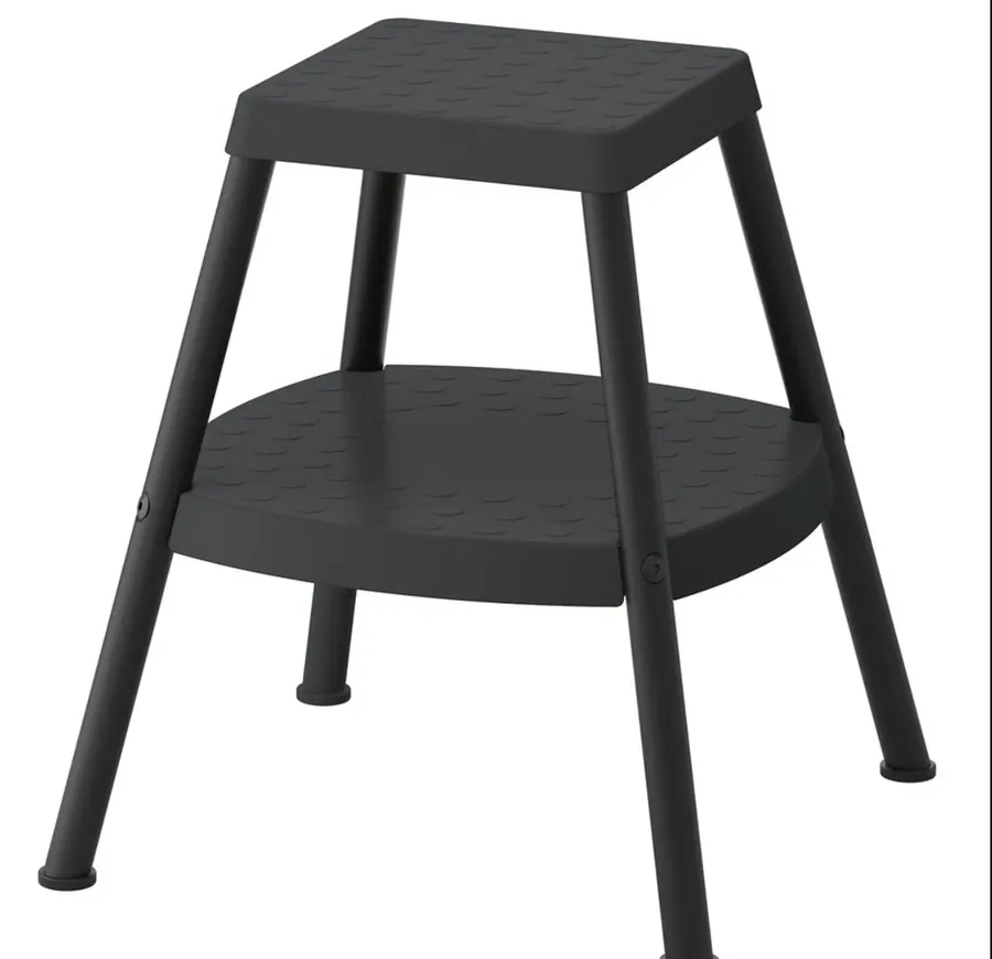 Y como soy chiquitita, siempre tenía todo hecho un desastre en los armarios altos. Para solucionarlo, he encontrado esta novedad, el taburete con escalón HADDARP que es eso, un dos en uno. Me vale para sentarme y para auparme y llegar bien a las alturas. Es muy robusto, antideslizante y no pesa casi. Aguanta hasta 100 Kg (espero no llegar nunca a ello) y solo cuesta 11,99 €