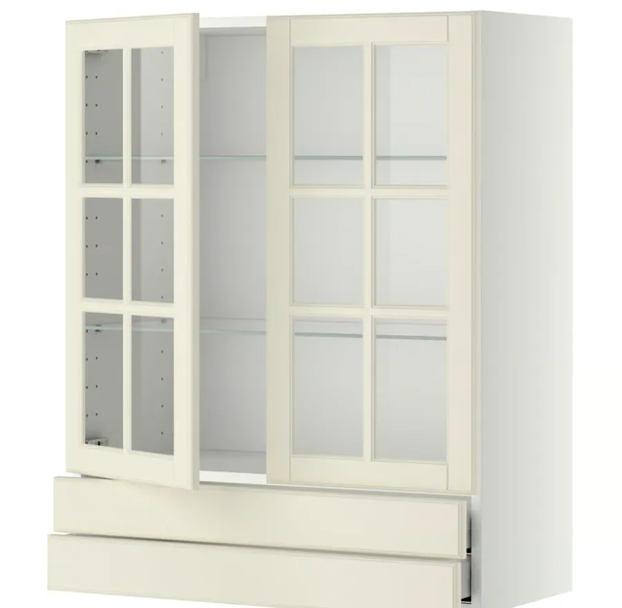 Para la cocina, soy clásica y me gusta este armario METOD / MAXIMERA con puertas de vidrio. Me permite tener a la vista mis platos y fuentes, y los cajones tienen el sistema de cierre amortiguado en los cajones. Además, las baldas las puedes poner a la altura que mejor te venga. ¿Cuánto cuesta? 269 €