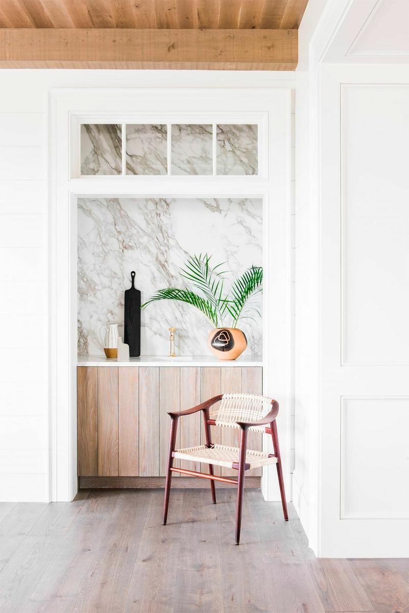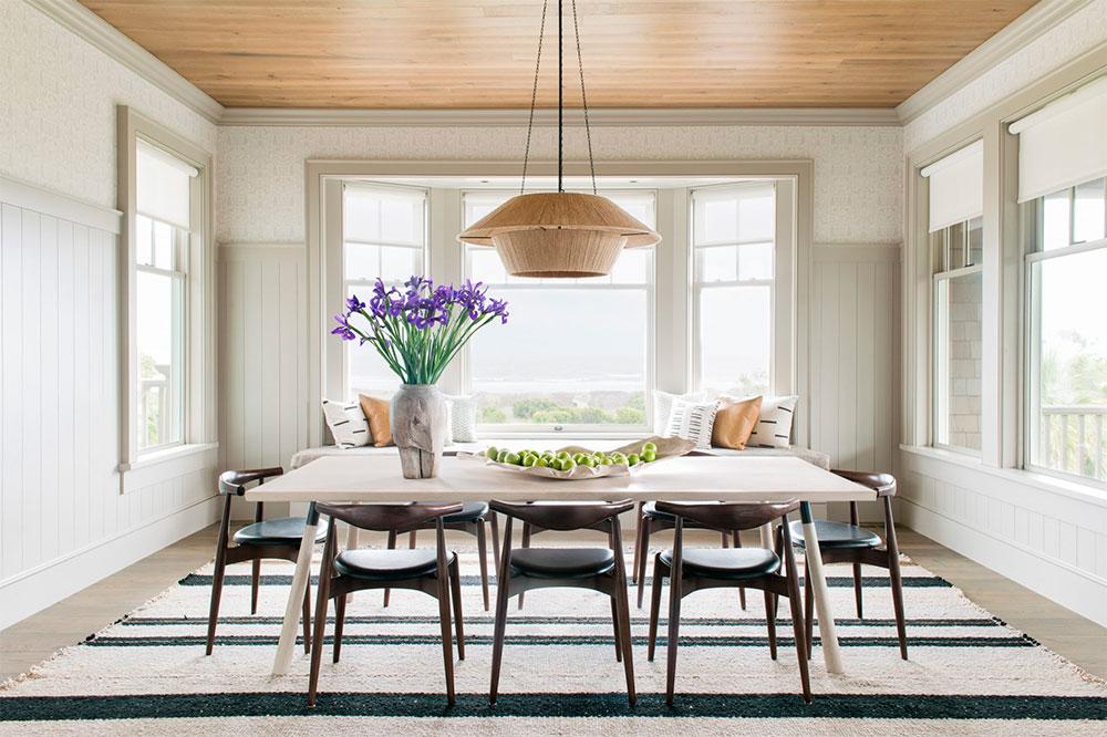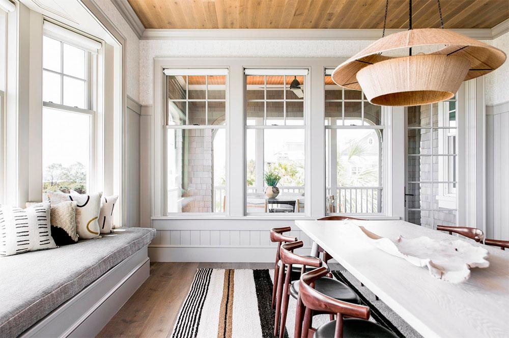 El arquitecto Mark Maresca y la conocida diseñadora de interiores Cortney Bishop, aunaron sus esfuerzos para diseñar esta bonita vivienda como segunda residencia para una familia de Nueva York en Carolina del Sur. Con una estructura predominantemente contemporánea, se han introducido piezas clásicas, otras artesanales, multitud de diferentes texturas… para que a pesar de la uniformidad en los colores, todos los espacios transmitan sensaciones.