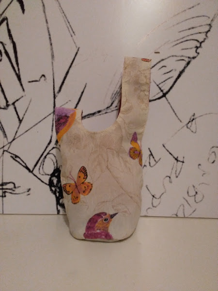 hechos con telas recicladas o compradas. Están forrados con tela de otro color .