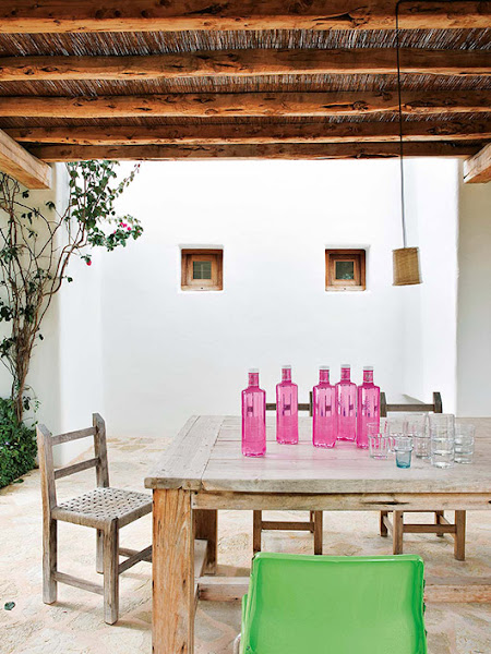 Por fin ha llegado el viernes y el otoño. Y como yo soy muy de ir a contracorriente he pensado que estaría bien empezar la temporada de los colore tierras y algo apagados, con una casita ibicenca llena de colores vivos.