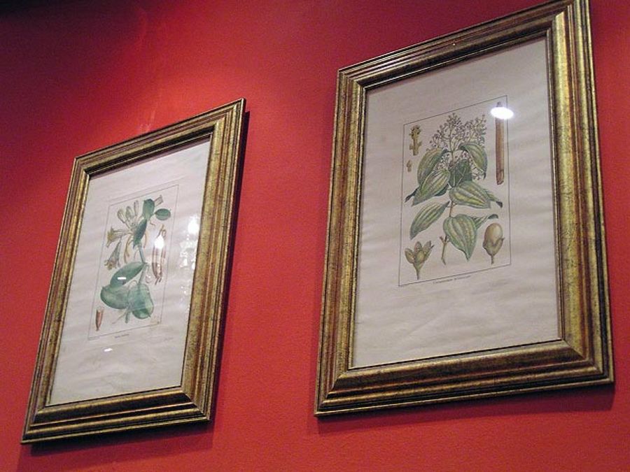 A pesar de que no hay un exceso de cuadros los que aparecen son de grandes dimensiones. Todos ellos relacionados con motivos relativos al chocolate, el cacao o sus plantas.