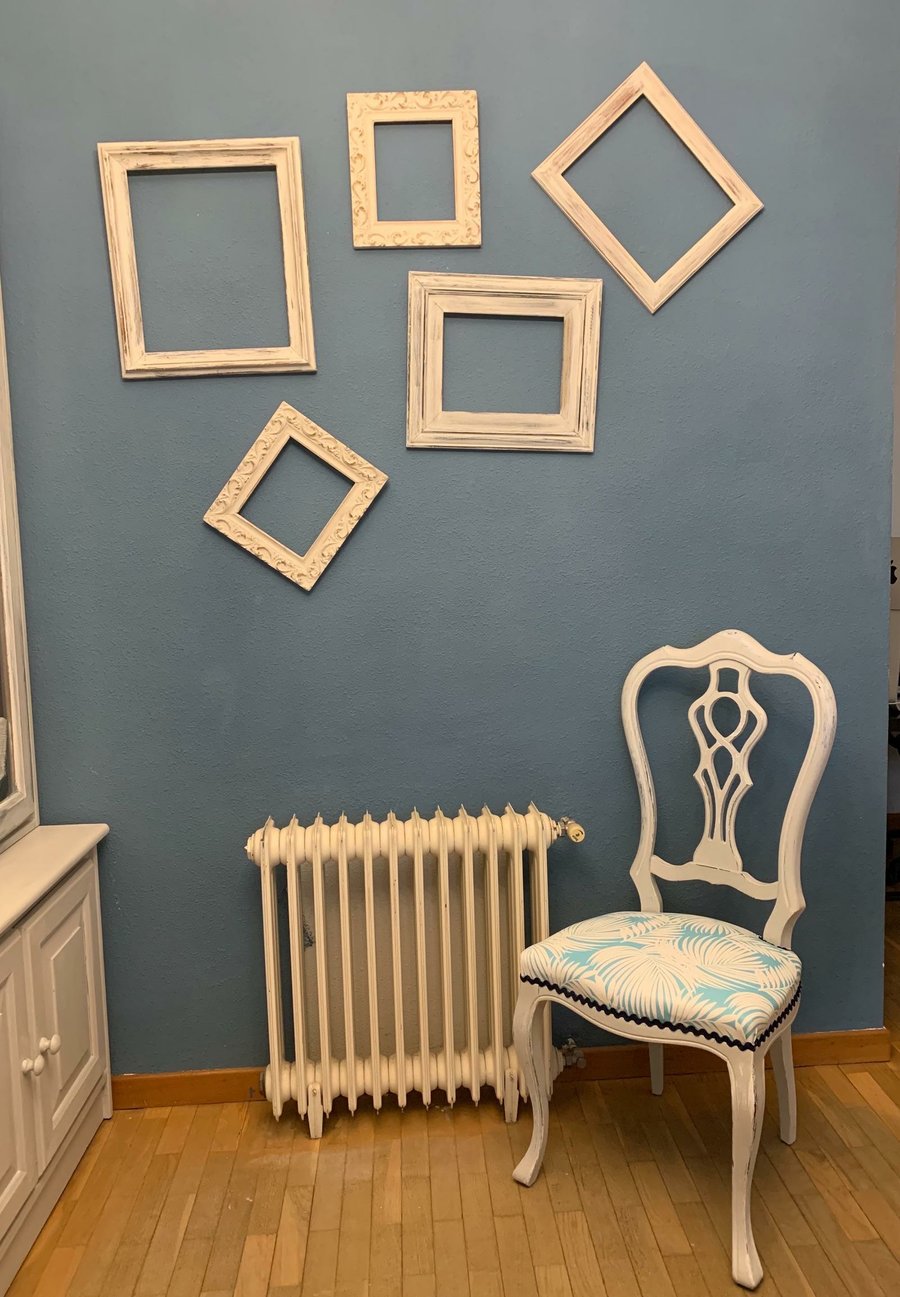 Si dispones de marcos que ya no usas o puedes agenciarte algunos baratos, sólo tienes que pintarlos de los colores que mejor combinen con tu habitación, salón, sala de estar... y colocarlos en ella.