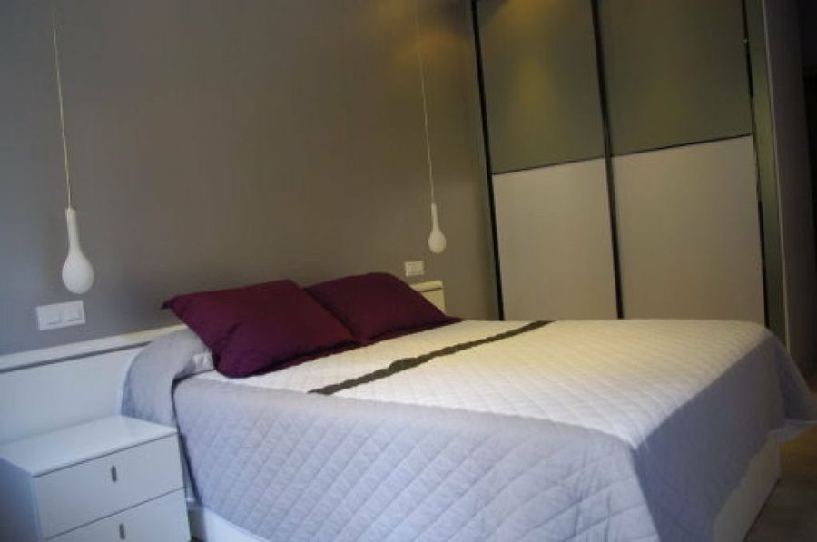 Si algo define la casa de Morgrana es la continuidad en el estilo y en el color de todas las estancias. Nos ha gustado el cambio de lámparas de techo por las típicas lámparas de mesilla. Además la combinación de gris y morado está de plena actualidad y es una de las repetidas dentro del estilo moderno.