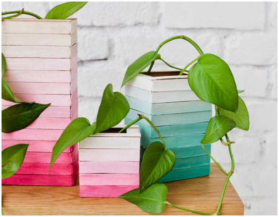 Sin duda mi diy favorito con palos de helados, unas macetas de efecto degradé.....¡No me digáis que no son bonitos! Como en las manualidades anteriores, tan solo necesitáis palos de helado, cola blanca o pistola de silicona y en esta ocasión pintura en spray. El proceso completo en Desde my hogar4.-Camino de mesa con palos de helado
