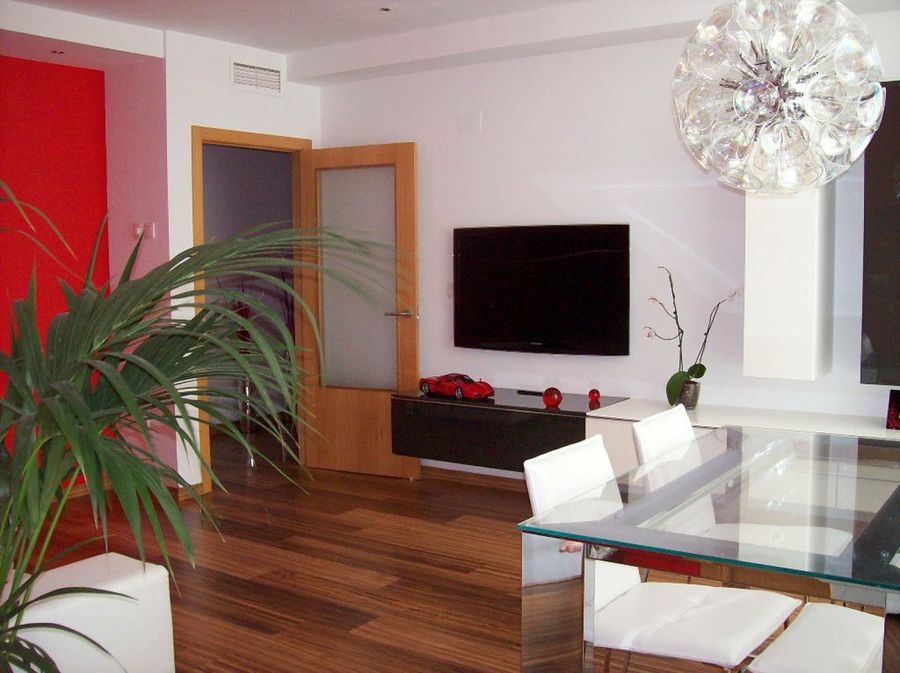 En toda la casa predominan los tonos neutros, principalmente el blanco, a excepción de algunas zonas en las que nuestra forera prefirió dar un inteligente contraste con otros colores más fuertes como el rojo y el negro, dos colores que combinan perfectamente con el tono del parquet del piso y que dan carácter y personalidad a la decoración al mejor estilo contemporáneo.