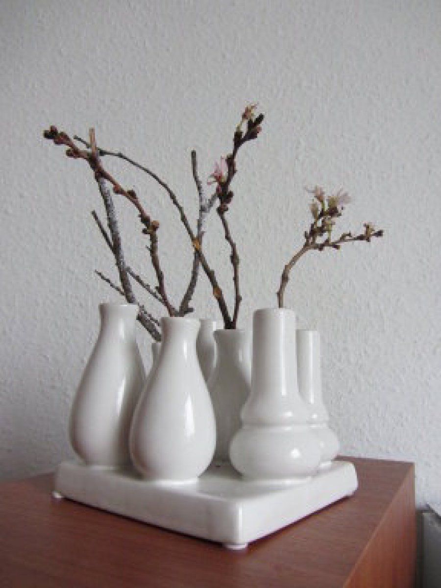 Los centros de mesa se hacen con ramas pequeñas, jarrones blancos, velas, farolillos...