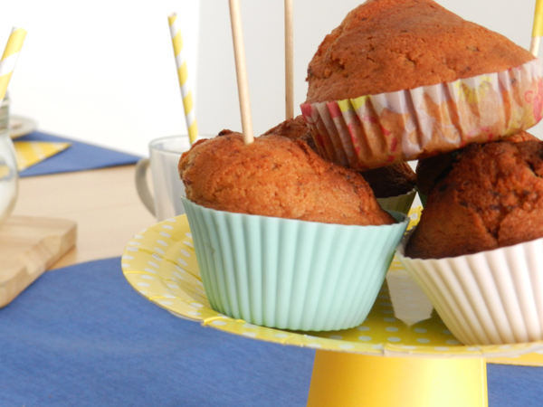 Ah! Me olvidaba… Para poner las magdalenas, cogí un plato y un vaso de papel que tenia en casa y con la ayuda de la pistola de pegamento, los pegué para crear un pequeño “pie de tarta”.