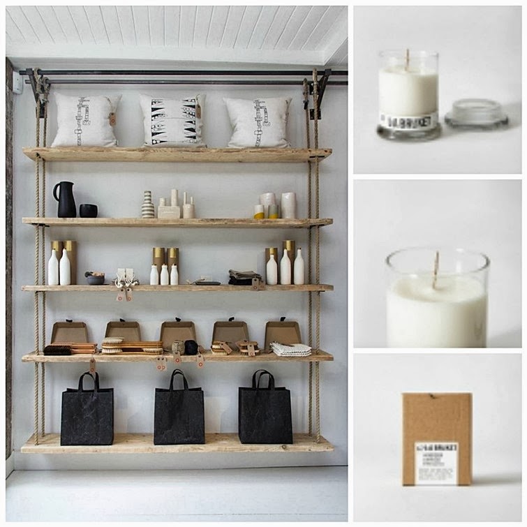 El interior de la tienda es limpio y minimalista. Madera clara, paredes y suelo en blanco puro como base, y detalles únicos para darle carácter, como la pared de scrapwood. La estantería hecha con cuerdas y tablones o las mesas de vigas recuperadas, son detalles de diseño que nos enamoran. A ver qué os parece!
