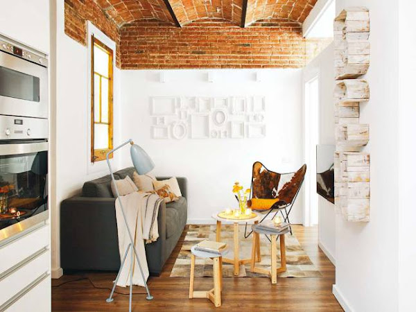 Cuando escucho algo sobre un piso que tiene 30 metros me viene a la cabeza una caja de cerillas. Pero de repente te cruzas con las imágenes de este piso barcelonés, y sólo puedo pensar en que quiero uno igual.
