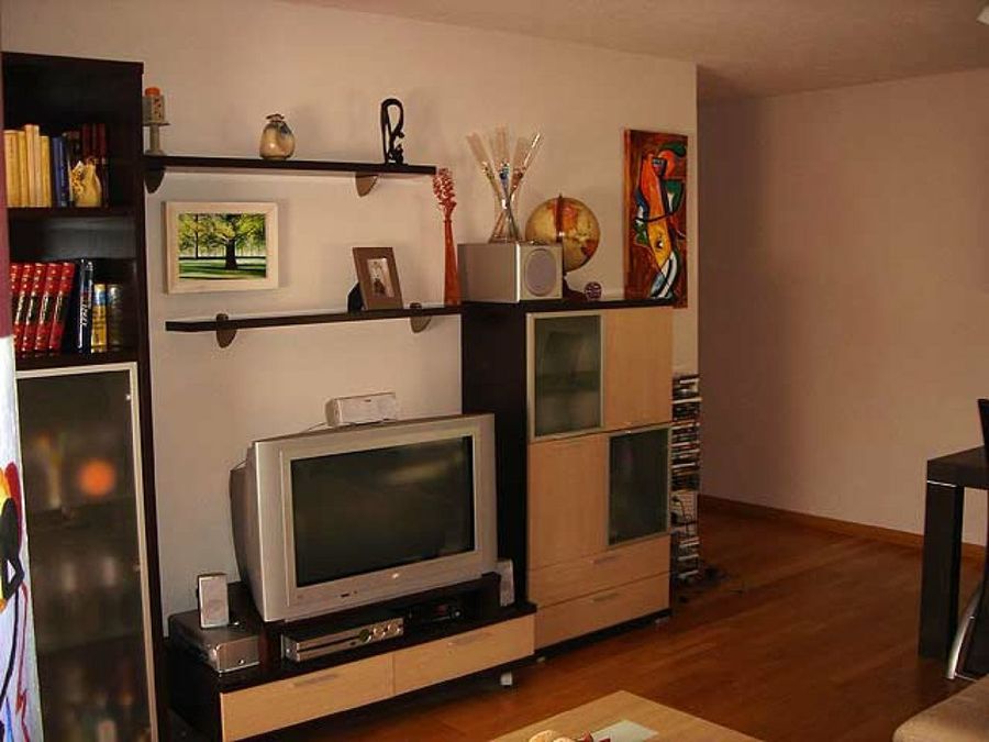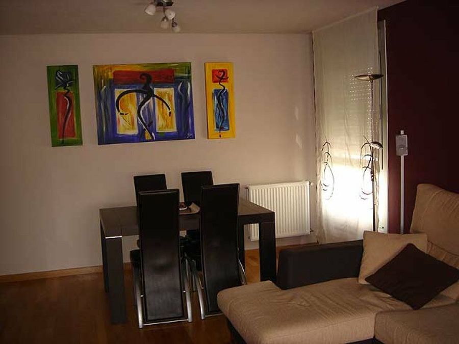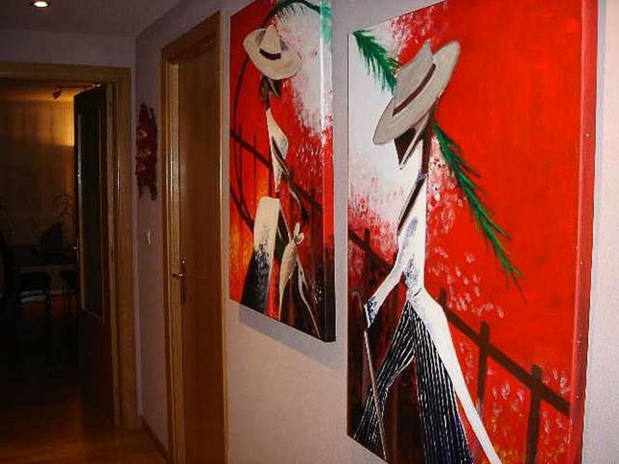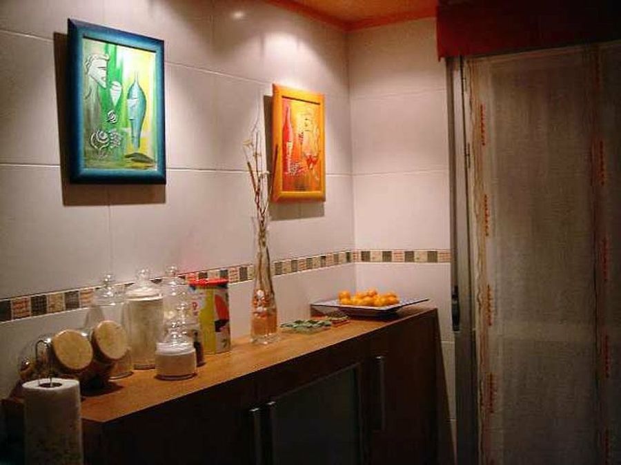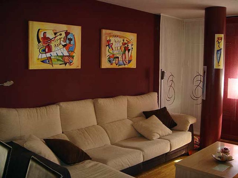 Sobre el parqué flotante descansan un mobiliario de corte moderno y de cierta inspiración zen. Las paredes fueron entregadas con un revestimiento de gotelé fino, pero el afán de los dueños por hacer de este entorno algo único, les llevó al empleo de un código de colores específico para cada estancia. Igualmente, la cerámica fue sustituida por una elección más acorde con sus expectativas. Sin embargo, el toque más genuino son, sin lugar a dudas, las obras de Ainhoa.
