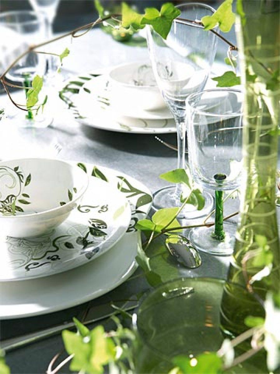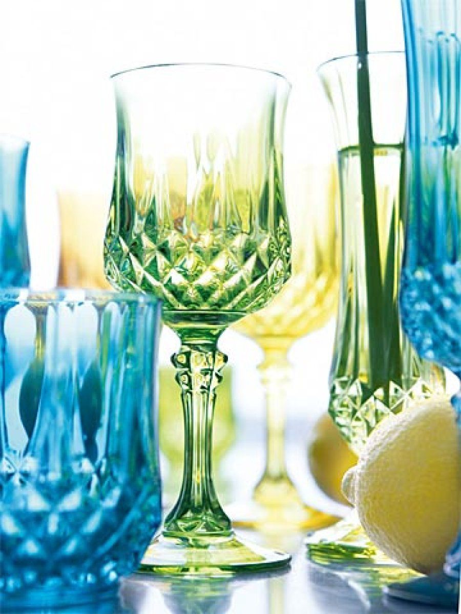 Sobre las mantelerías más frescas deben descansar los servicios de mesa más vibrantes. Cristal D´Arqués impregna en sus copas Longchamp Folies los tonos marítimos. Así, las líneas barrocas de esta cristalería acogen de buen grado el verde y el turquesa. Y para empezar a comer, Luminarc nos presenta la cubertería Floral, con pequeñas flores de inspiración japonesa.
