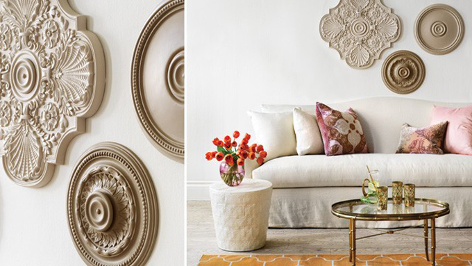 Utilizando plafones para decorar las paredes, además de hacerlo de una manera original y diferente, le damos ese contraste entre estilos que, por lo menos a mi, me gusta tanto. Los podemos dejar en blanco o del mismo color que las pared, buscando que se funda con ella, o pintarlos de diferentes colores. Qué os parece esta idea?