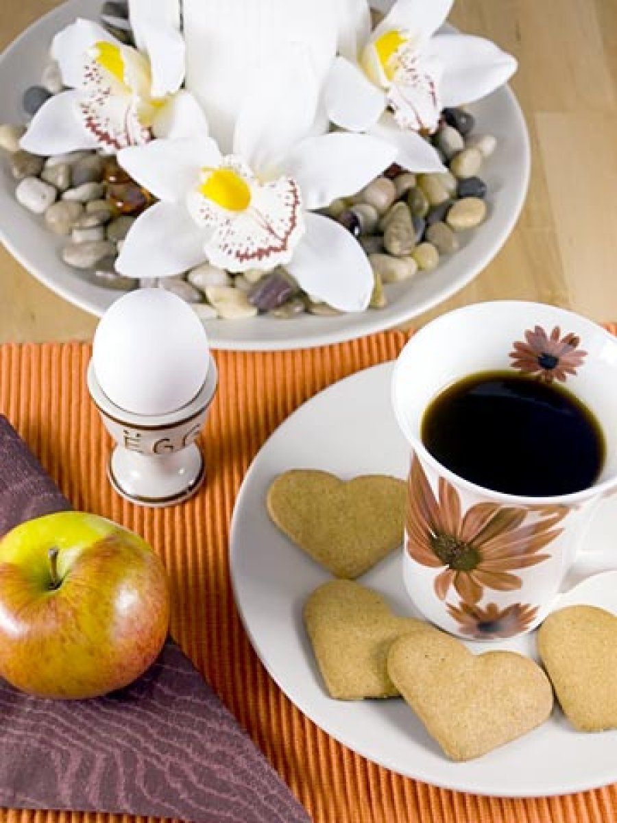 Si ya es demasiado tarde para encontrar un juego de café o dos simples tazas con dibujos propios de la festividad, nada mejor que acompañar los servicios de menaje disponibles con dulces con formas alusivas. Si el supermercado está cerrado, no te preocupes: dibuja un bonito corazón con la espuma del café.