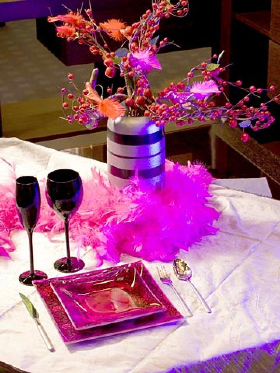 Las flores son económicas, siempre que te decantes por alguna especie común. Así pues, un centro floral es una condición casi indispensable para que la mesa represente fielmente la dimensión de tu cariño. Si eres profundamente clásico, un lazo rodeando el jarrón será perfecto. Si te defines como alguien atrevido, prueba con una boa de plumas.