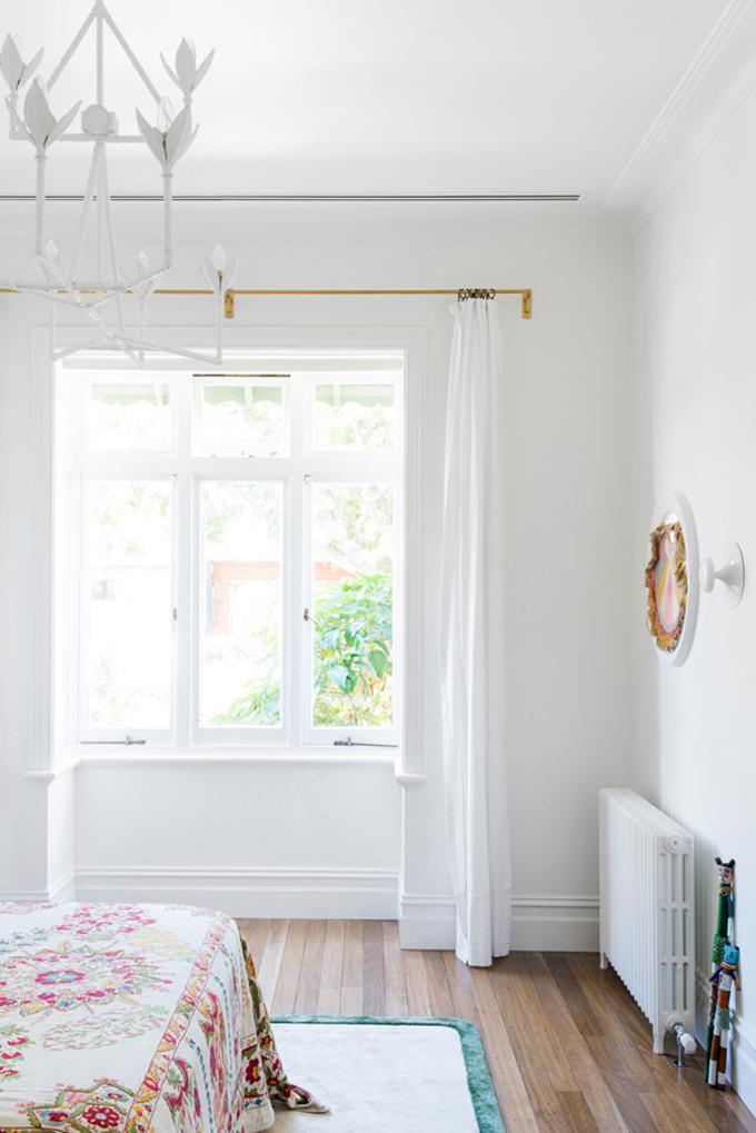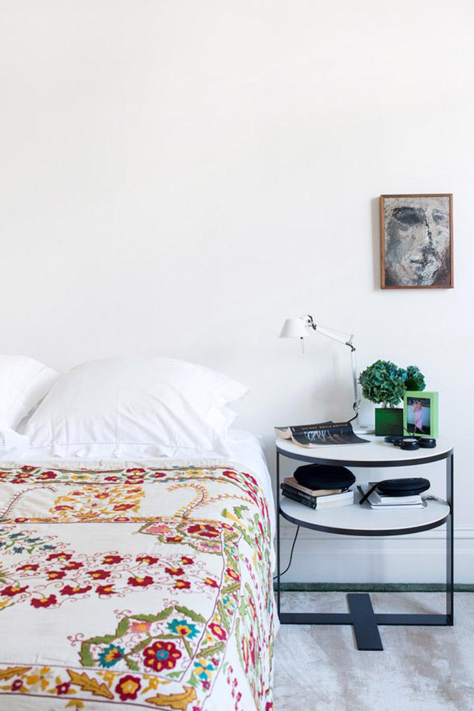 Me encanta la sencillez de este dormitorio. Como, utilizando el color blanco hace que toda la atención se enfoque en la espectacular colcha. Un espacio perfecto y muy fácil de conseguir, no os parece?
