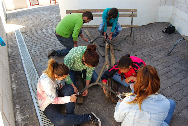 La verdad es que se trata de una experiencia únicaporque no todos los días se pueden enseñar los conocimientos que uno va adquiriendo, en mi caso de forma autodidacta, y porque motiva ver las ganas y la implicación que pones los jóvenes en esto. Es una experiencia muy buena y de la cual me alegro mucho participar. También sirve para ver otro tipo de realidades a las que uno está acostumbrado. Como veis vamos avanzando en nuestro trabajo y los bancos poco a poco van tomando forma. Los jóvenes les ponen muchas ganas y se estas esforzando muchísimo y es un gustazo trabajar con ellos.
