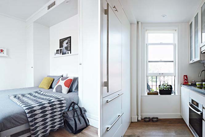 Hoy en día, existen parejas o familias que prefieren apartamentos que sean pequeños, cómodos y acogedores, ya que el mantenimiento y el costo de los mismos es más accesible para las personas. Es por esta razón, que me llama la atención la sencilla y perfecta distribución de este pequeño apartamento, además de su luz y diseño, aprovechando hasta el último rincón para almacenaje, como los bancos de la cocina o el cabecero de la cama. A continuación, te presentamos unas fotografías del apartamento: