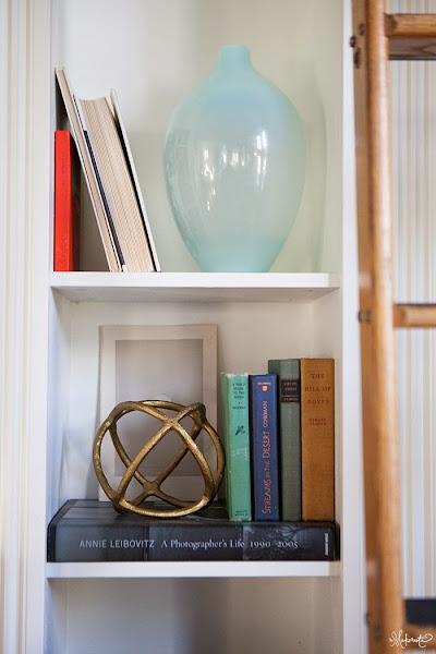 Con unas estanterías sencillas de Ikea se ha creado una biblioteca con un acabado a medida de la pared. Con las opciones que tenemos a la hora de encontrar materiales, no será difícil hacerse con las piezas de madera cortadas a medida y con los embellecedores de los marcos.La escalera, una pieza tan de moda, podemos encontrarla en diferentes tiendas (en Olaimar tenemos una, pero entre los proveedores ya he visto varias de otras medidas) y solo hay que adaptar la barra y las ruedas para crear el móvil.