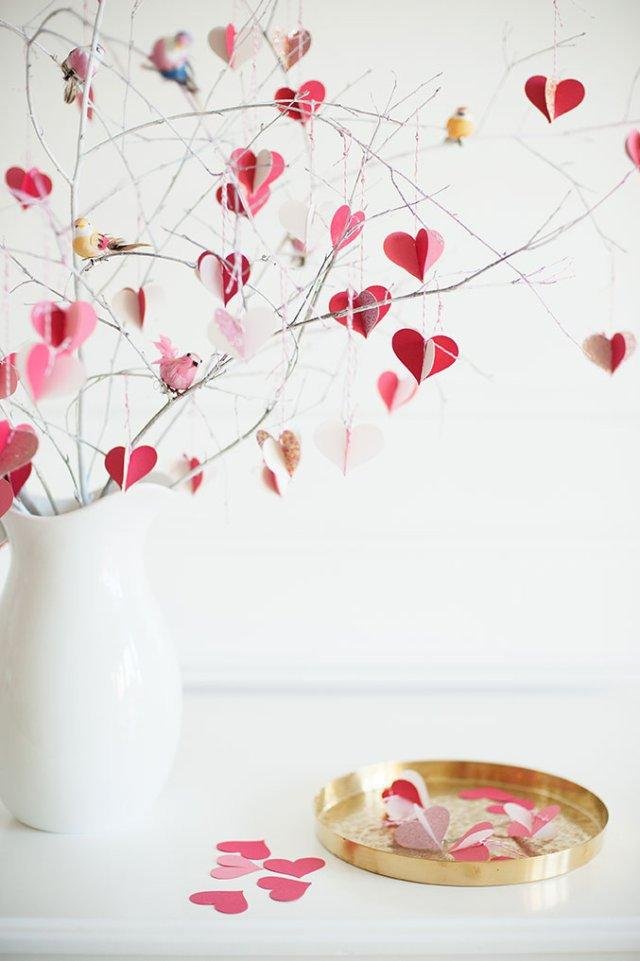 Pasos a seguir para realizar la decoración con ramas y corazones de papel: