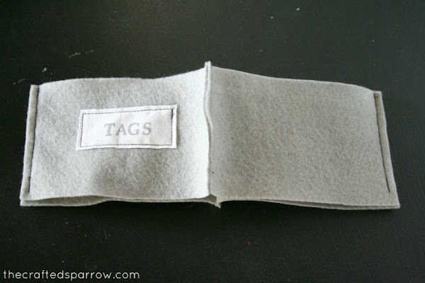 Para hacer la etiqueta, sólo hay que recortar un trozo de fieltro, y con sellos poner el nombre de lo que vayamos a meter dentro. Si no tenéis sellos u os da pereza usarlos, siempre lo podéis hacer con un rotulador permanente. Una vez la tinta esté seca, sólo hay que coser o pegar la etiqueta a nuestra caja.