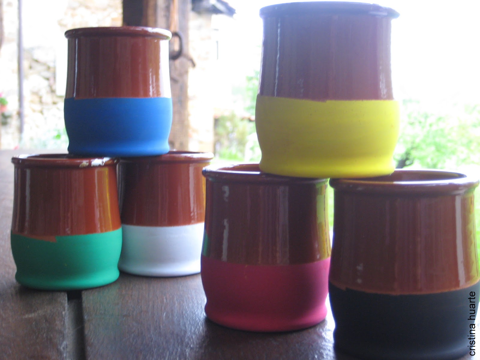 Seguimos con las manualidades que he hecho con mi hija durante los días de lluvia. Como teníamos un montón de tarros de barro, los hemos pintado en diferentes colores para darles uso en la cocina, todavía no sabemos muy bien su destino, pero seguro que lo encontramos. De igual manera el tema de nuestra publicación va orientada hacia la decoración con estos tarros de barro que seguro quedarán divinos.