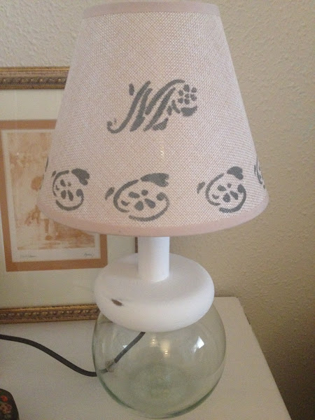 Para el estarcido elegí un motivo sencillo para rodear la base de la pantalla y luego las iniciales mía y de mi marido, puesto que las lámparas van a ir en nuestras respectivas mesillas de noche.