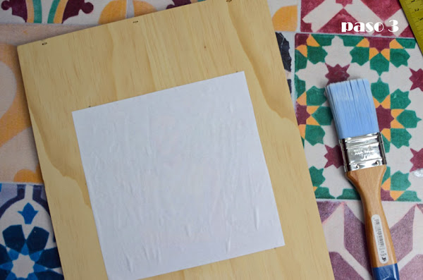 ¡Que me voy por las ramas! seguimos con el transfer, je, je. Además de la imagen necesitáis un gel de transfer, yo utilicé este de Titanlux, pero hay miles en las tiendas de manualidades y bricolaje. Y por último, una base a la que transferir la imagen, en mi caso tenía esta tapadera de una de las cajas de vino que utilicé como estantería en el salón y como no tiro nada y me encanta reutilizar todo, me venía genial para esto.