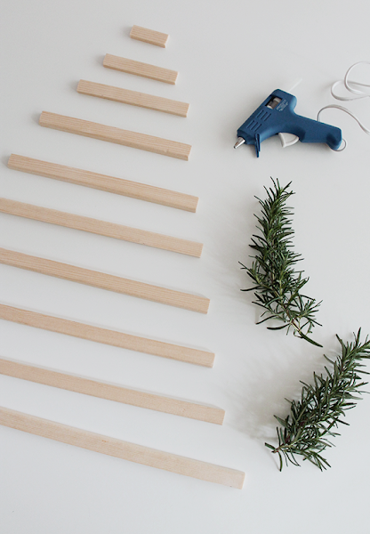 Unas maderitas. La cantidad dependerá de lo grande que quieras el árbol. Como ves en la foto, tienes que ir cortando de menor a mayor para simular la forma del árbol.