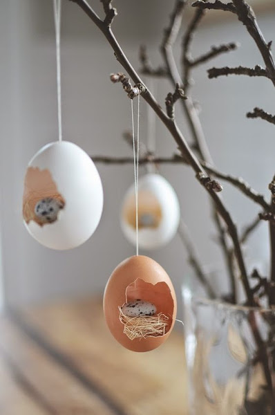 Una manera muy fácil de crear unos nidos de huevo a partir de huevos normales, en el interior pondremos un huevo de codorniz, perfecto para hacer un centro de mesa para el día de Pascua.